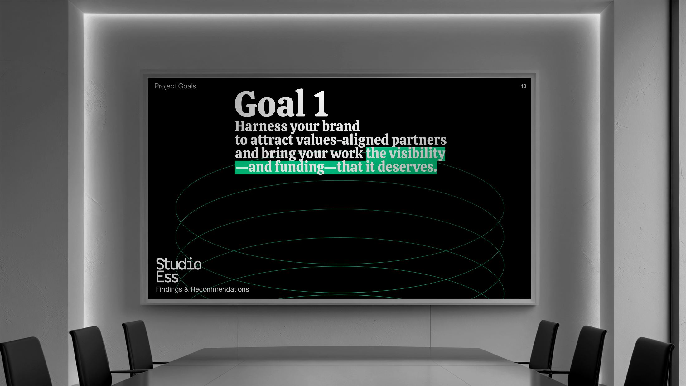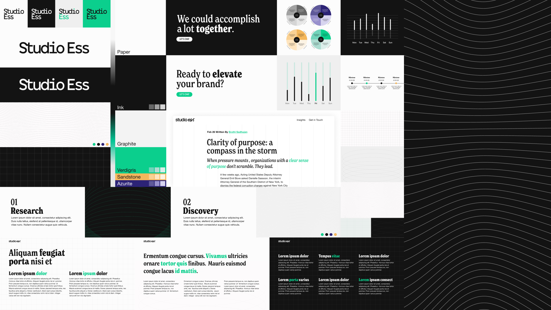 Studio Ess is a brand strategy practice based in Amsterdam, focused on transformation within the non-profit and mission-driven space. A logo, identity system, comprehensive presentation deck, and brand guide were developed to build upon the studio’s already strong foundation.